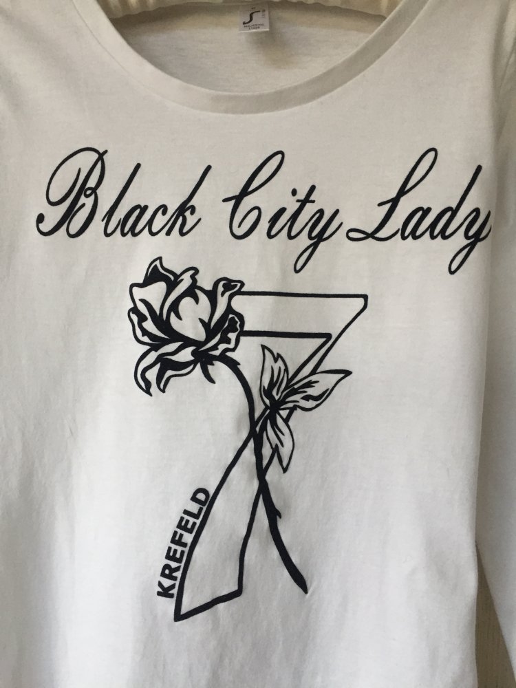 Einmal mit der Aufschrift Black City Lady auf dem Arm und Brust