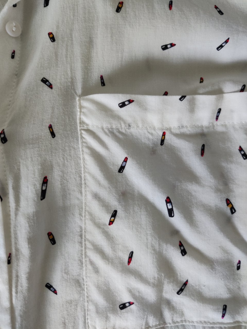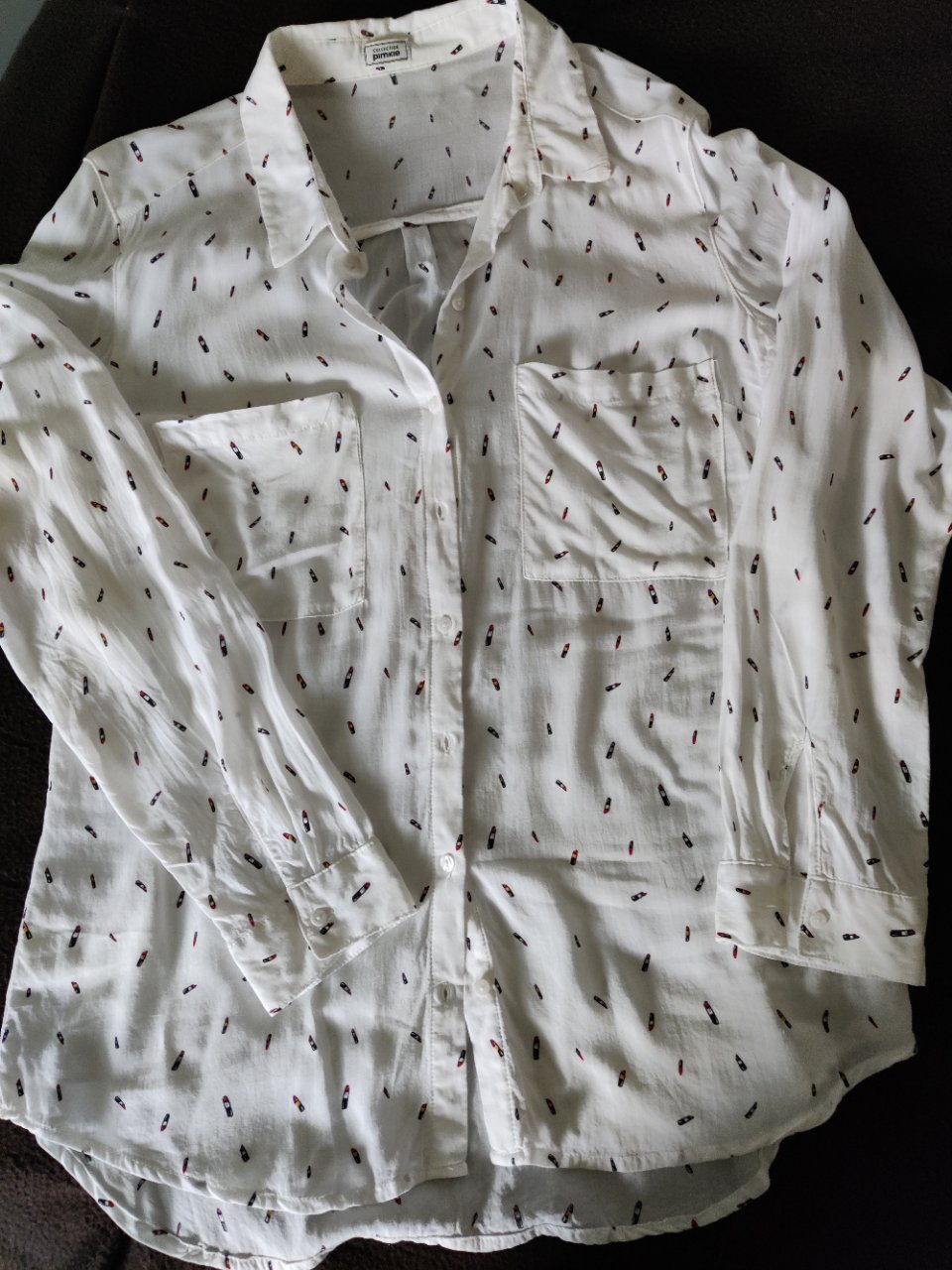 Ausgefallene Bluse mit Lippenstift-Motiven Ausgefallene Bluse mit Lippenstift-Motiven