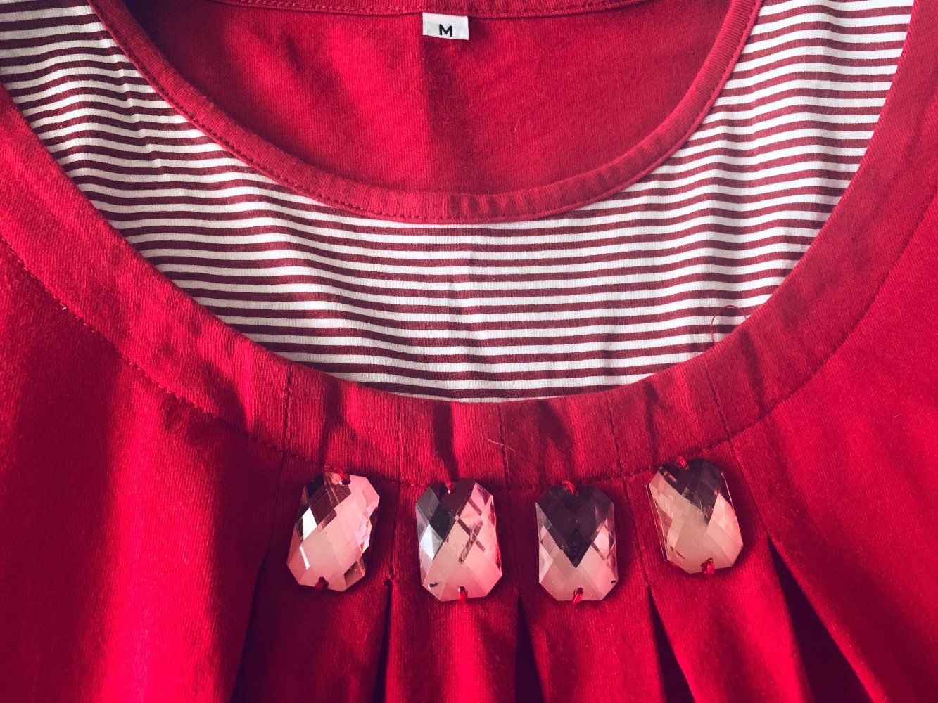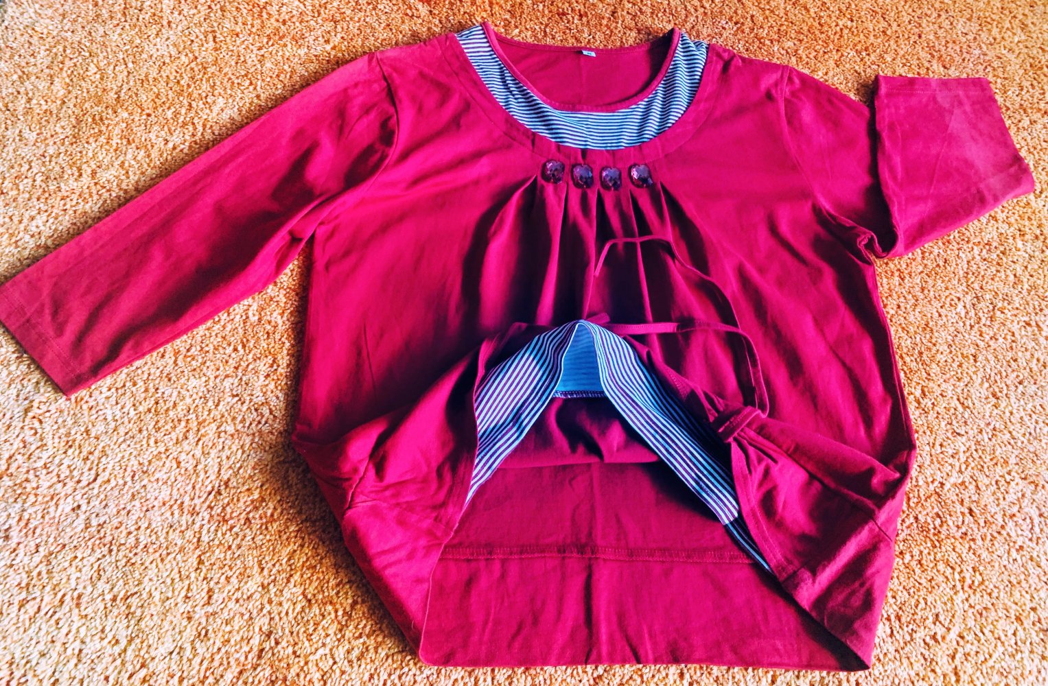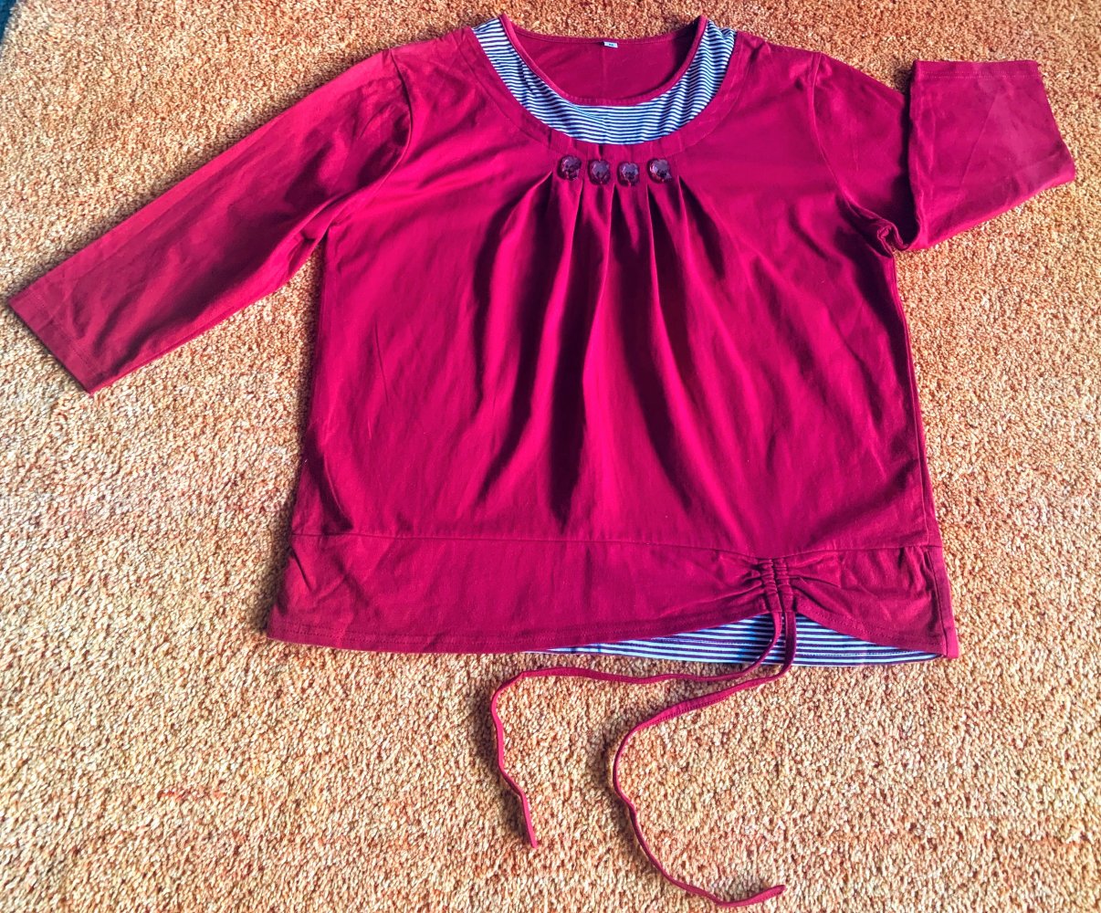 Damen Pullover/Shirt Gr.M Rot gestreift Lagenlook Glitzerdetails Neuwertig