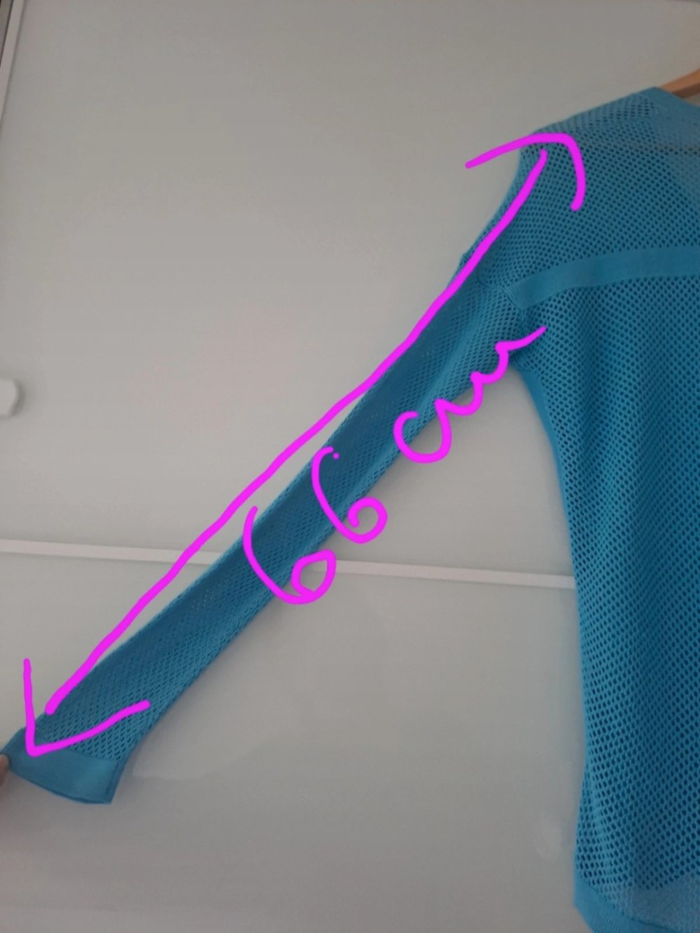 Farbe himmelblau, V-Ausschnitt, Lochstrickmuster, Größe 38 / M (hier kann man nur 38 / S auswählen)