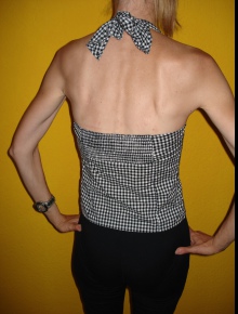 Schwarzes sommerliches Top mit Rosenprint. Das Top wird am Rücken geschnürt.