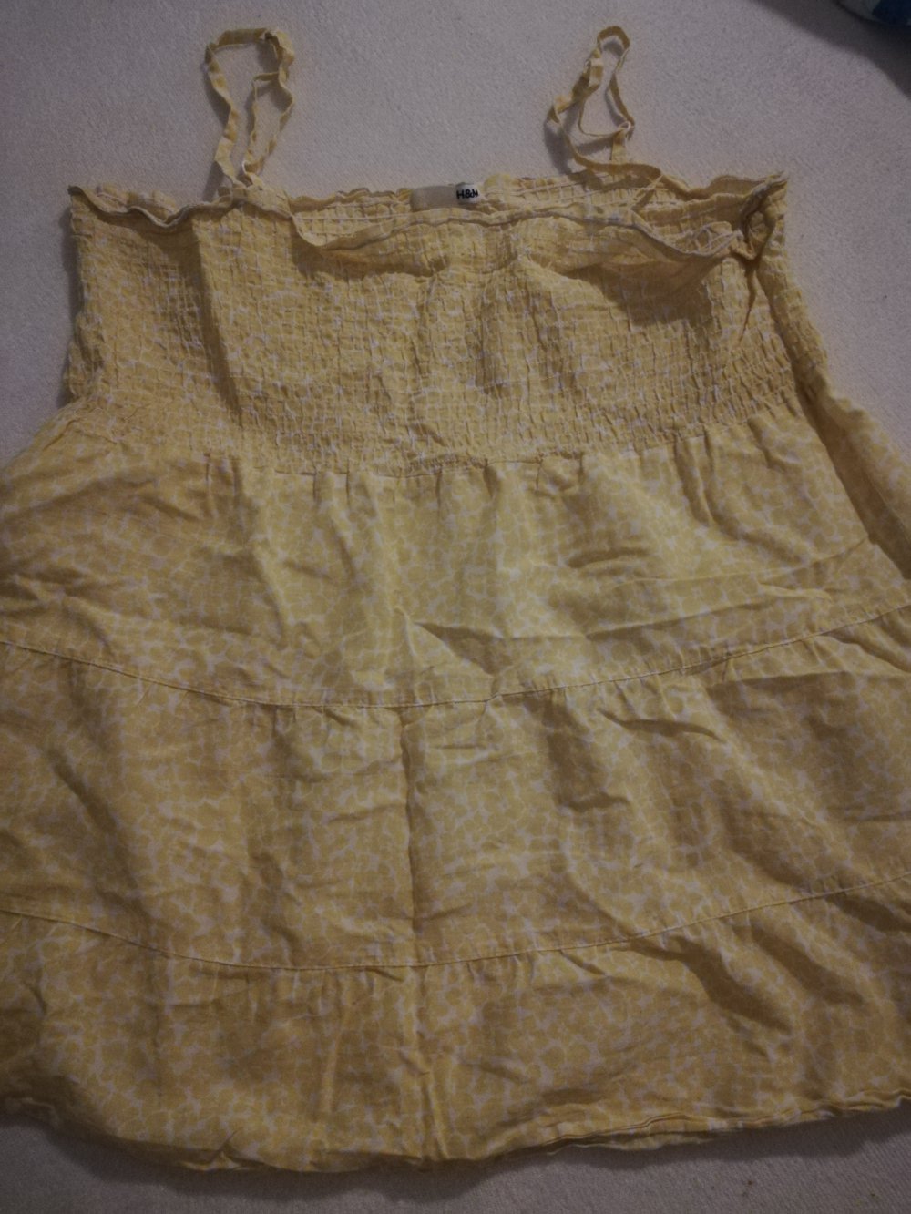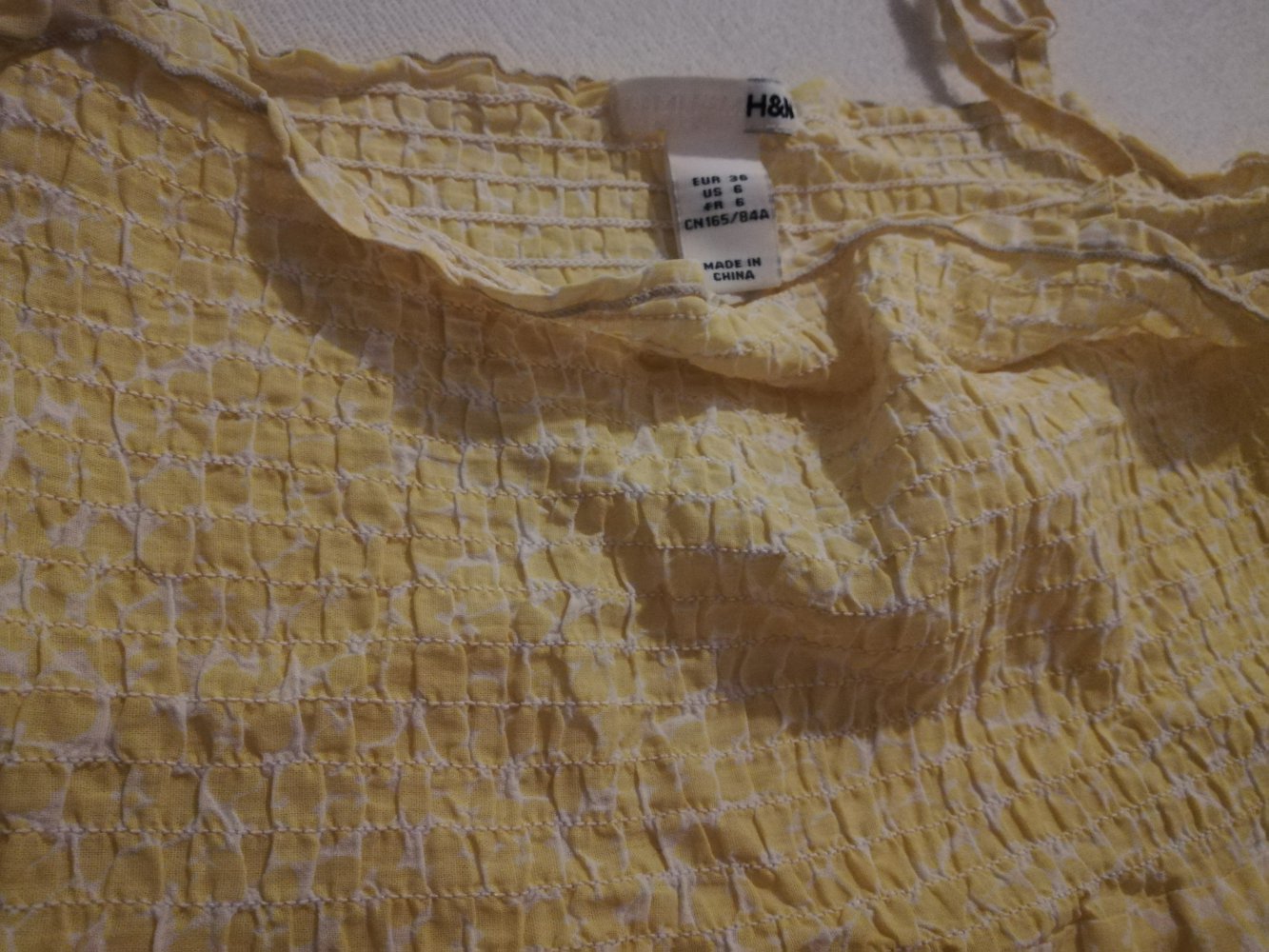 Babydoll Top mit einem Muster aus gelb-weißen Blüten, Gr. 36 von H&M. Passt auch locker bei 38. Ein paar Mal getragen, aber guter Zustand. Verstellbare Träger. Schönes leichtes Material für den Sommer. Irgendwie trage ich es nicht mehr, daher könnt ihr es euch schnappen :)