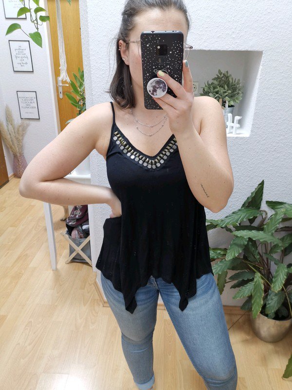 biete euch hier dieses #ausgefallene top an, durch die Steinchen oben und dem besonderen Schnitt unten ein richtiger #hingucker .