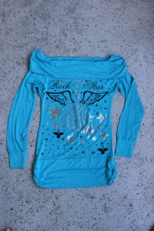 Hellblaues schulterfreies Top