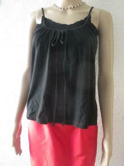 NEUw * Romantik * Lace Spitzenrand * Spaghetti Träger * Baby Doll * Top * T- Shirt "SISLEY" Gr. 36- 38/ S * schwarz * Gothic