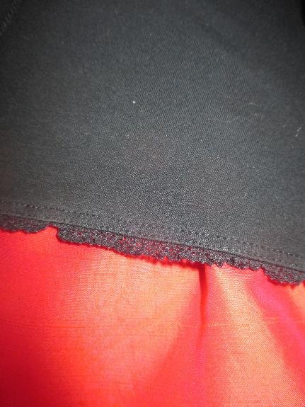 Mit einem romantischen Lace- Spitzen Rand, um den Ausschnitt herum, und vorderen unteren Rand verlaufend.