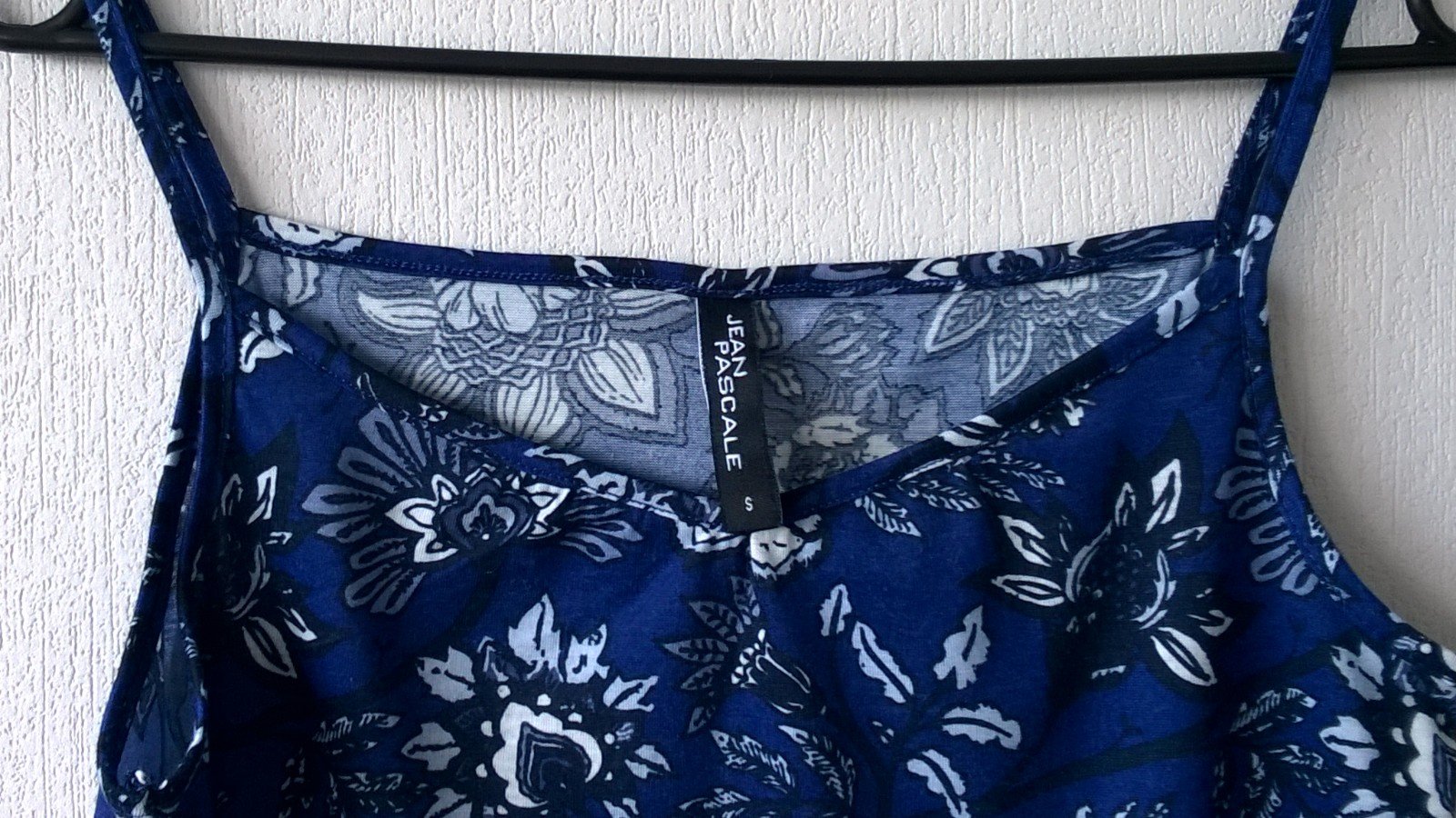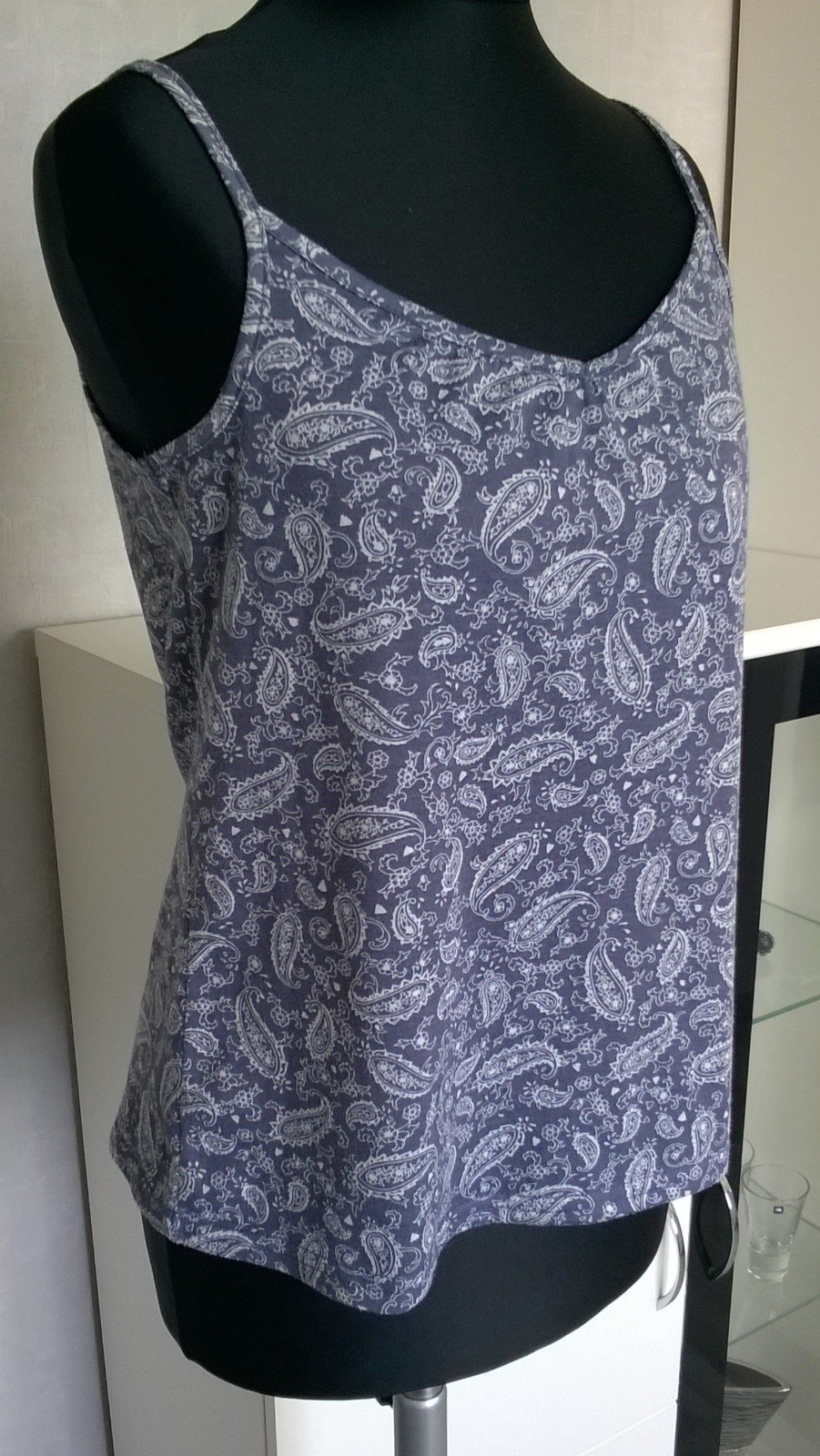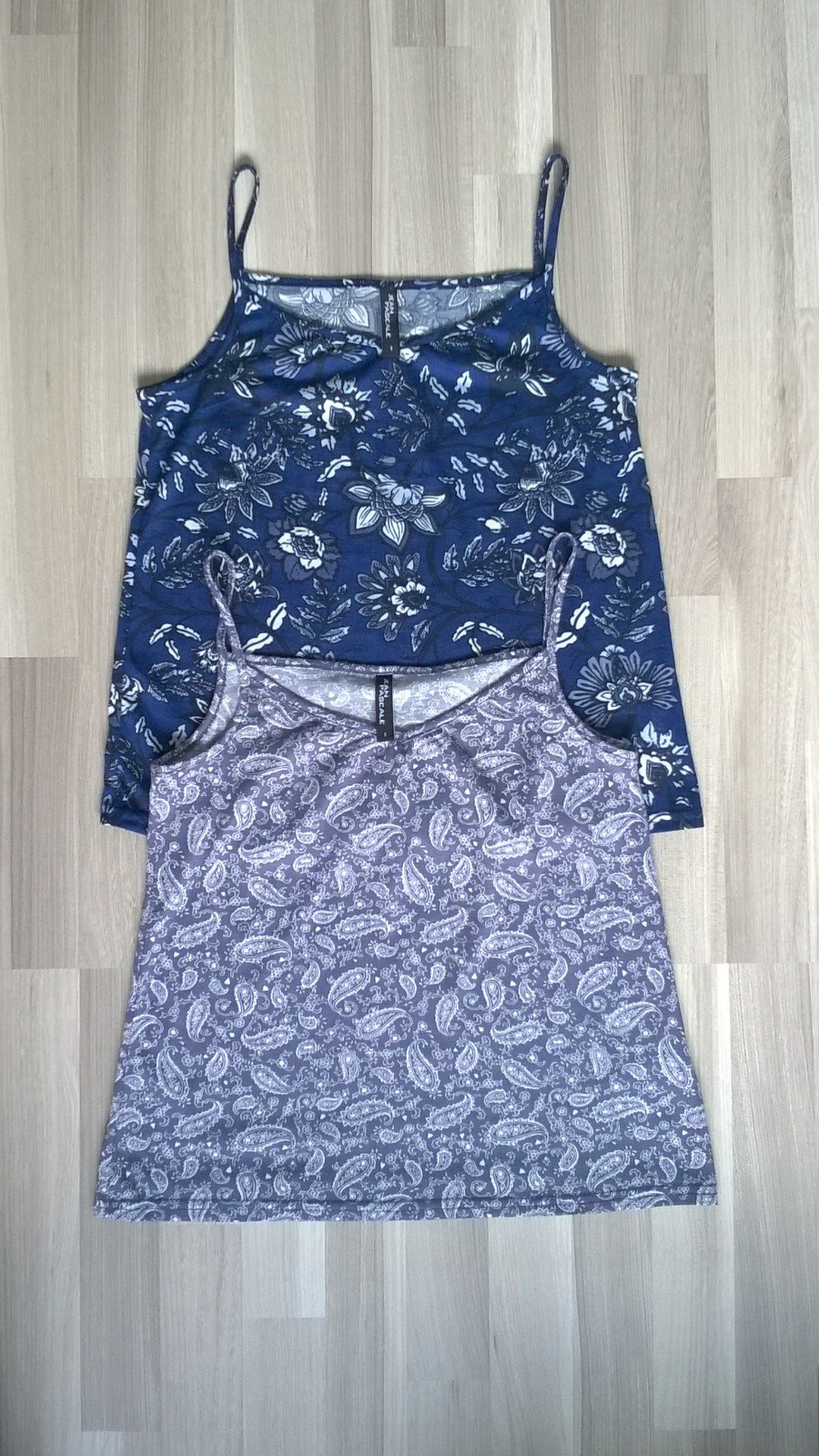 Top Trägertop Oberteil 2er Set blau / graublau weiß Muster und Blumen Gr. S Jean Pascale
