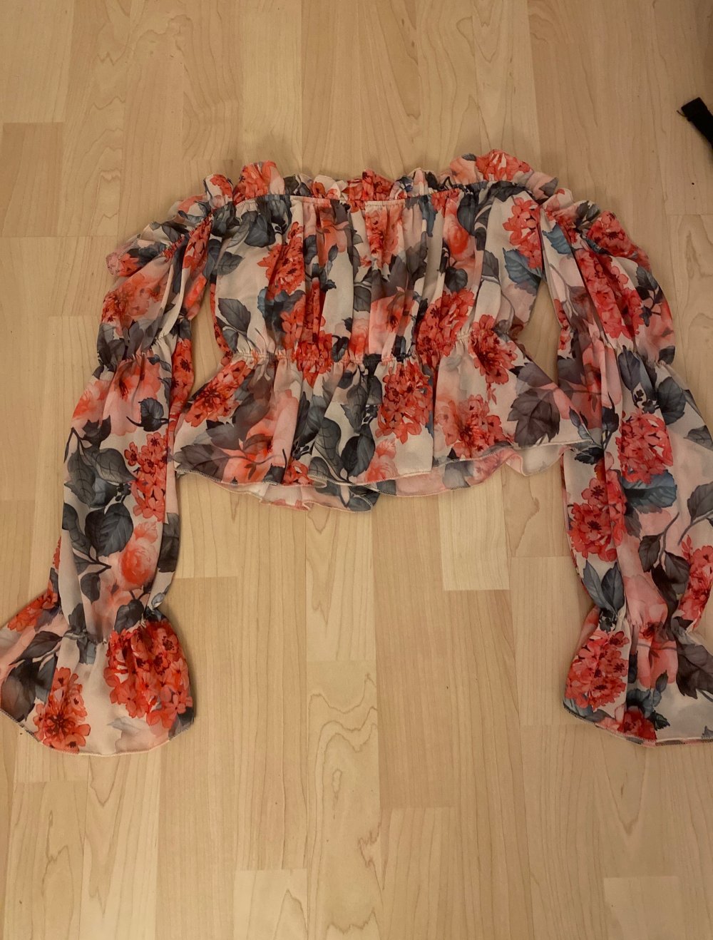schulterfreies Top mit Blumen