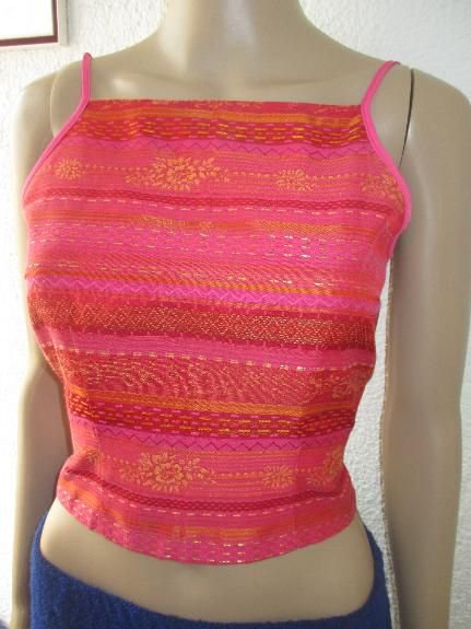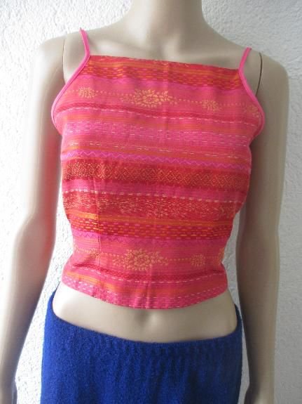 NEU * Indian * Goa * Boho * Hippe * Festival * Style * Blumen * Blüten * Stickerei * Streifen * Seiden Optik * Spaghetti-Träger * Bustier * Bauchfrei * Kurz * Corp * TOP "REVIEW" Gr. 36- 38/ S * pink * terra- cotta * orange *