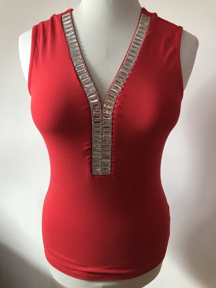 Oberteil Top Sexy rot 38/40 Women Fashionista Strass Glitzer V-Ausschnitt MB Collection Longsleve Jersey Shirt Glamourös festlich