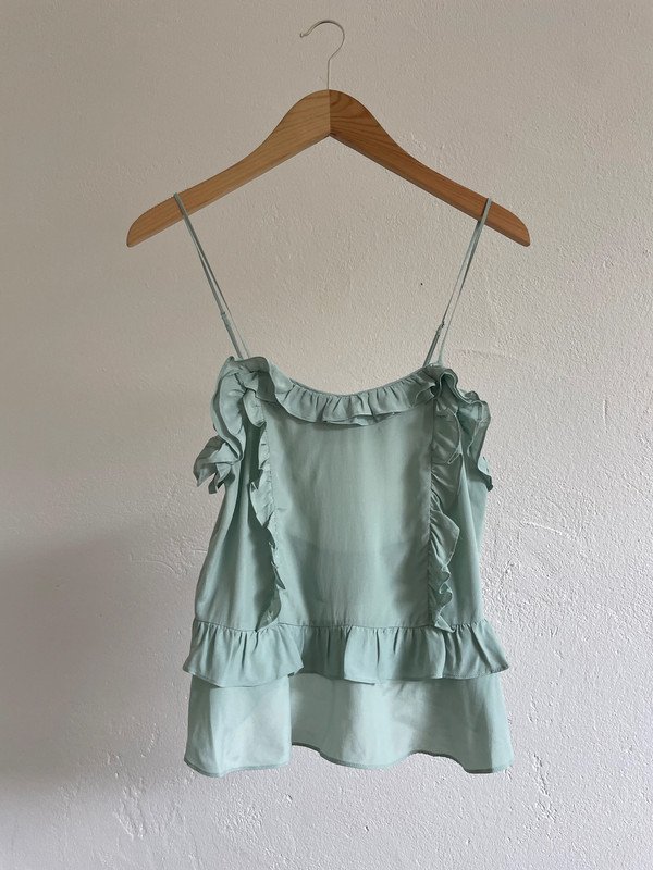 H&M Trend Top in mintgrün mit Volant Viskose Seide