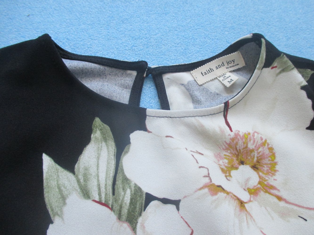 NEU * Romantik * Blumen * Blüten * Flower- Power * Träger * Tank * Top * T- Shirt "faith and joy" Gr. 38- 40/ S- M * schwarz * weiß * rosè *