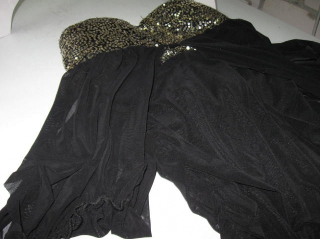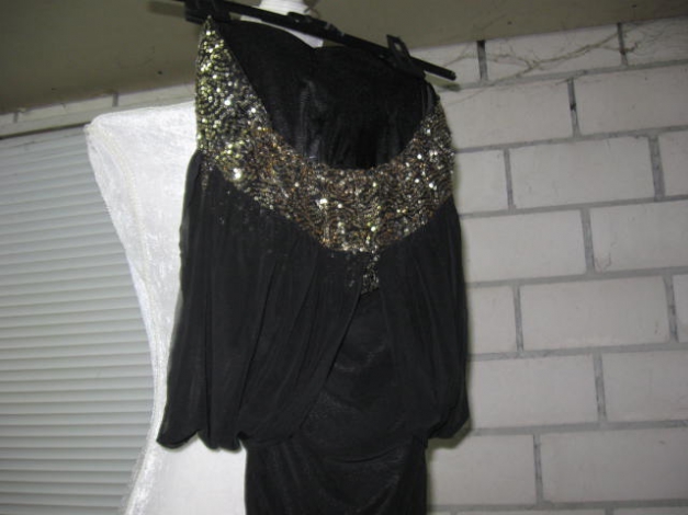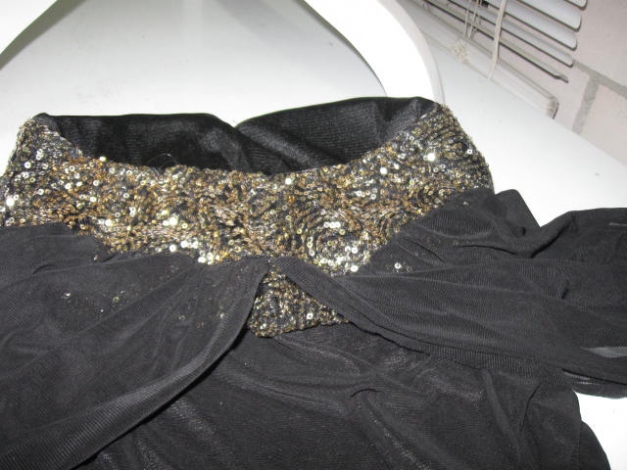 Tolles Partyoberteil, das nicht durchsichtig ist. Der obere Teil, ist mit vielen goldenen Pailletten verziert und der Brustbereich ist etwas ab gepolstert, um so einen sicheren Halt zu erhalten. Ein 100% Blickfang, auf jeder Party. Ob zu einem Rock oder Hose, dieses Oberteil ist der Knaller!!! Ich schätze die Größe auf 36/38. Hier einige Maßangaben: