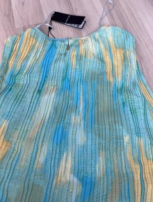 Die Träger und der Ausschnitt sind geflochten und danach fällt es locker nach unten. Es umschmeichelt die Figur und ist deswegen für die wärmeren Sommertage perfekt geeignet.