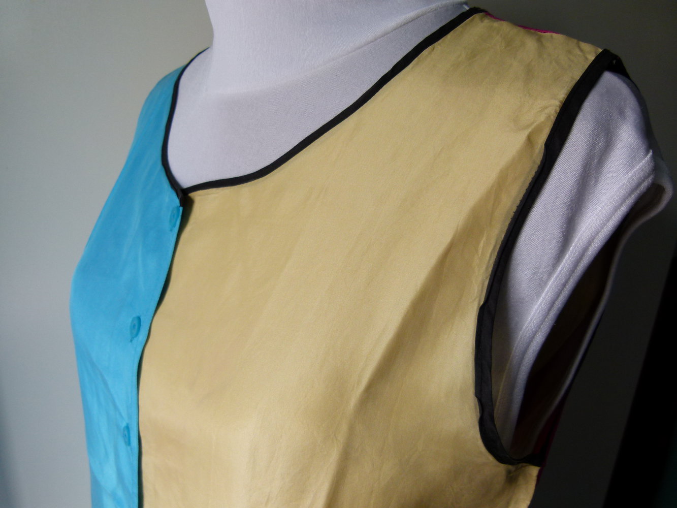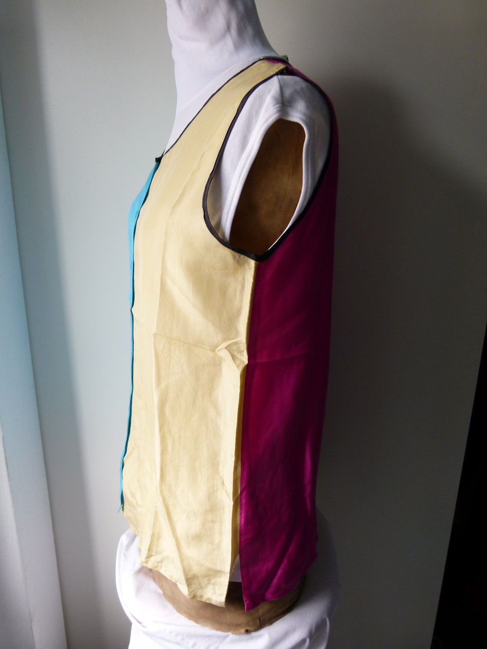 Seiden Blusentop, gelb türkis pink, aus den 80ern, Retro Vintage 80s Boho Festival Goa Hippie Colour Blocking