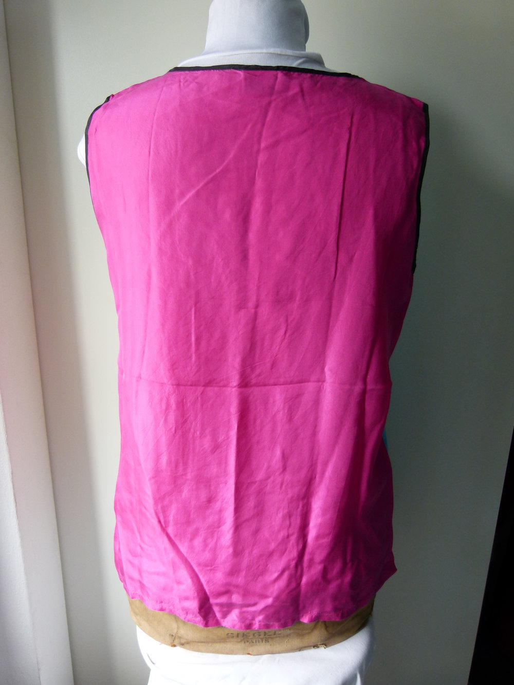 Schönes Blusen-Top in türkis/gelb/pink aus reiner Seide, perfekt für den Sommer.