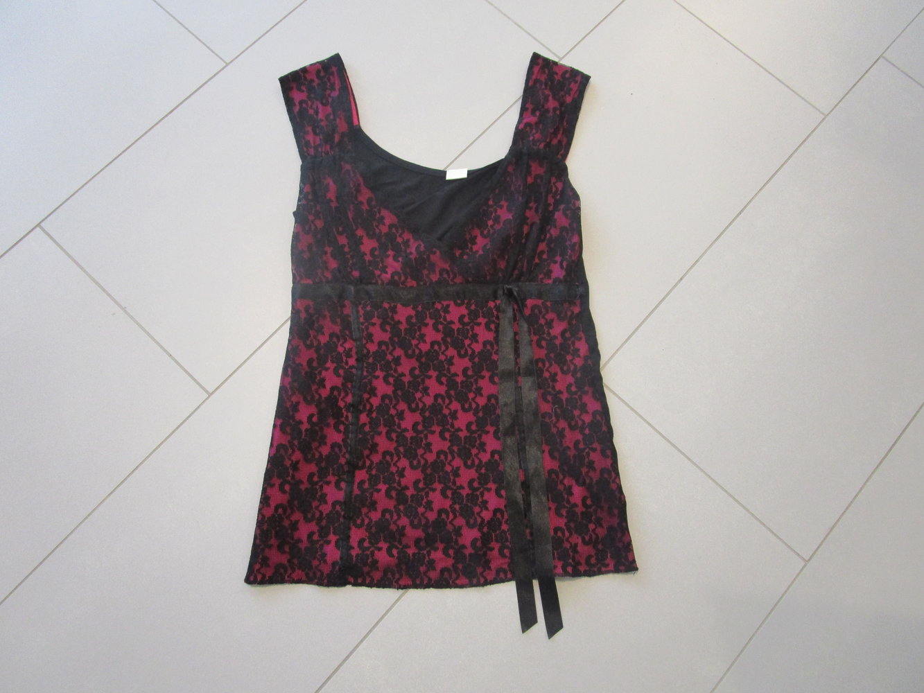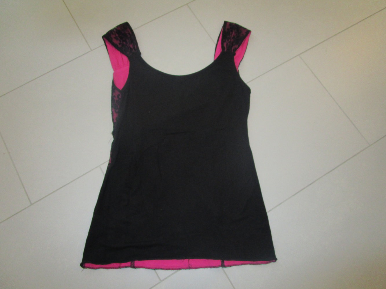 Top schwarz-pink mit Spitze, Größe 32/34 Top schwarz-pink mit Spitze, Größe 32/34 Top schwarz-pink mit Spitze, Größe 32/34