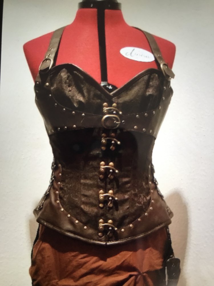 Ich verkaufe dieses tolle Steampunk Neckholder Brokat Korsett Größe ist eine S-M oder Korstettgröße 24 für ein Taillienmaß von: 69-75 cm