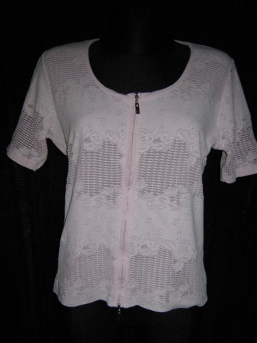 NEU * Edel * Häckel * Spitzen * Kurzarm * T- Shirt * Cardigan * Jäckchen "BIBA by ESCADA" Gr. 44- 46/ L * rosé- rosquarz *