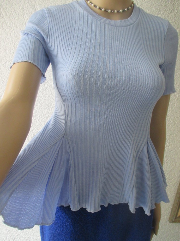 NEU * edel * Ripp- Optik * Bodycon * ?Peplum * T- Shirt * Pullover "ZARA COLLECTION WOMAN BASIC" Gr. 36- 38/ S * lavendel * flieder * hell-blau * Pastell *