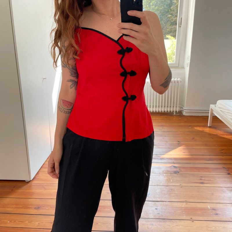 Vintage Top Oberteil aus Leinen Baumwolle mit Knopfleiste