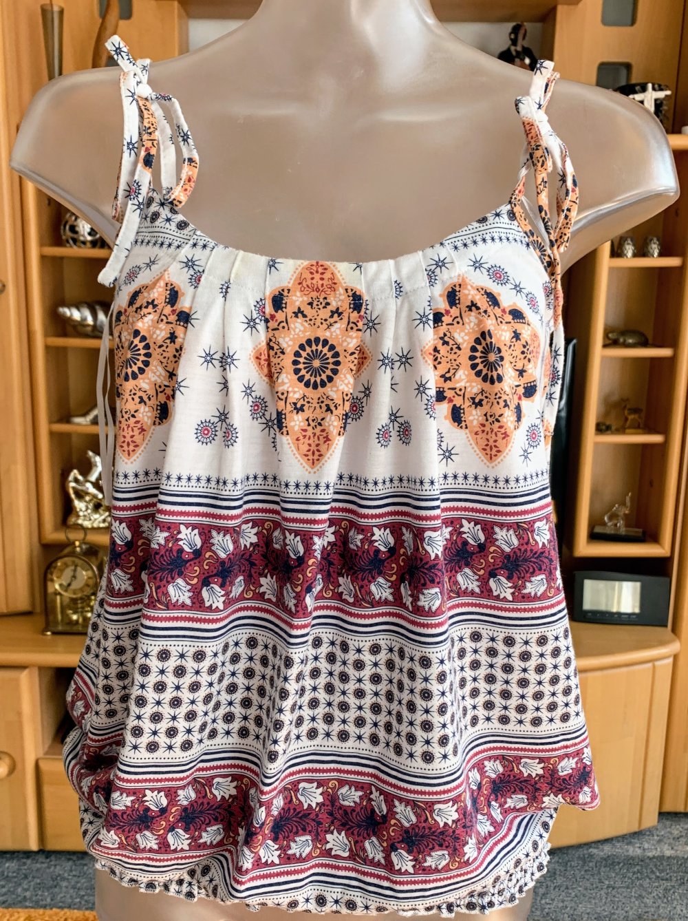 Damen Shirt Sommer Top mit Trägern Gr.38 Bunt (Creme/Rot/Schwarz) Blind Date