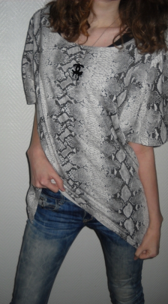 Schlange Animal Print T-Shirt Shirt Pulli Tunika Snake Reptile Kroko weiß creme grau oversized 34 36 38 40 XS S M L