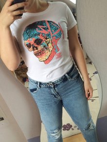 Zara Real Flowers T-Shirt Gr.S weiß mit Blumenmotiv