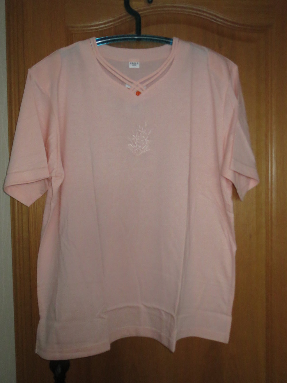 Ein hübsches Detail bei diesem Shirt ist die farblich abgestimmte Stickerei am Rundhals- Ausschnitt.