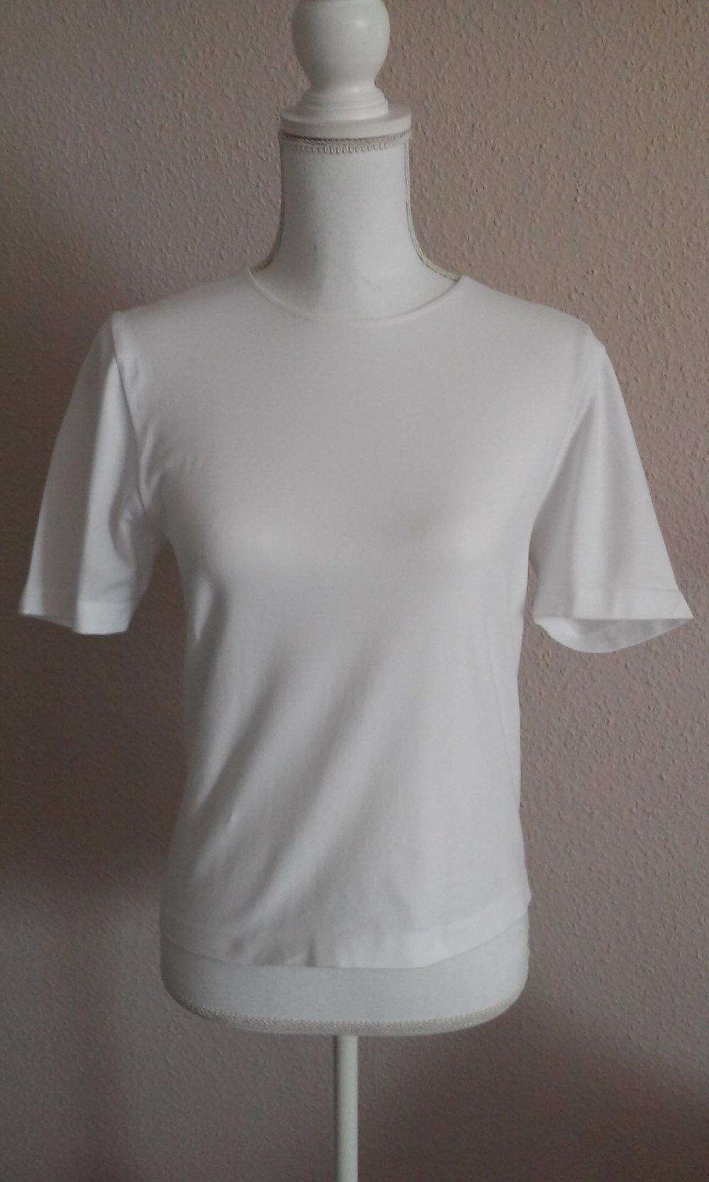 T-Shirt Shirt Pulli Sommerpulli Unterzieher Rundhals weiß, eng anliegend/Fogurbetont