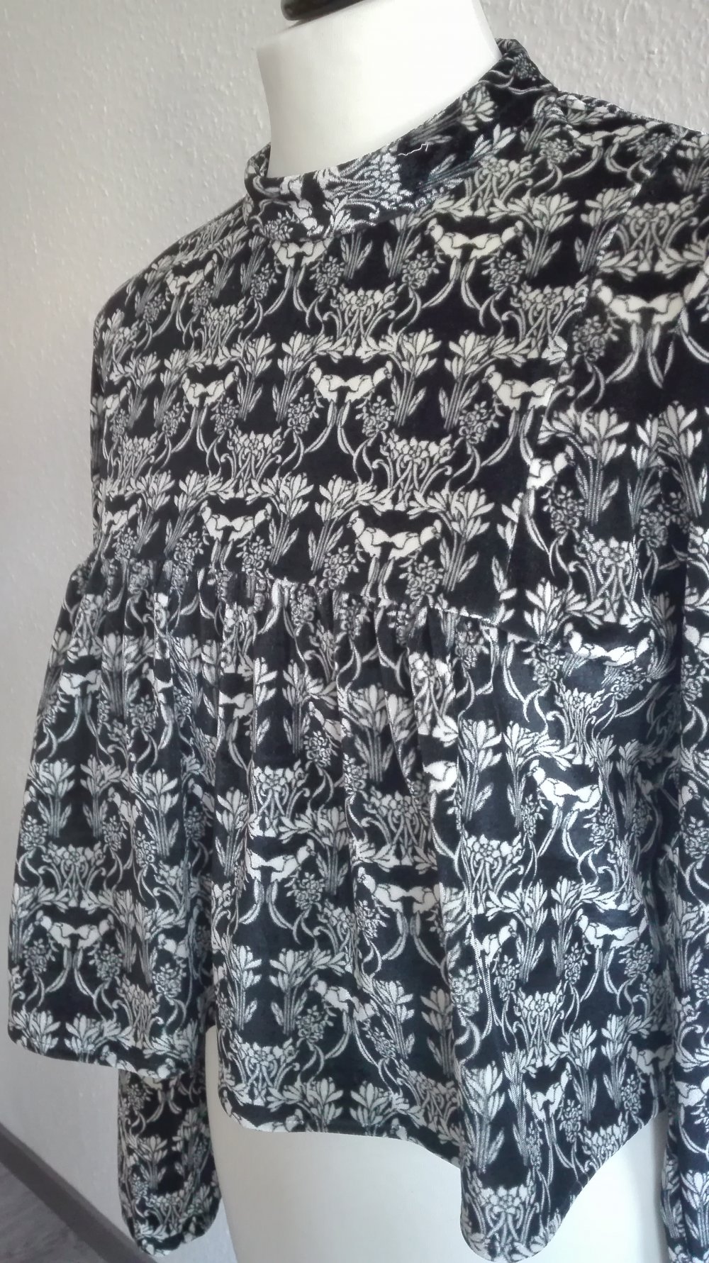 #croptop #crop #bauchfrei #zara #zarafashion #zarawoman #stehkragen #kragen #langarm #schößchen #schwarz #weiß #muster #extravagant #unique #besonders #romantisch #elegant #samt #samtcroptop