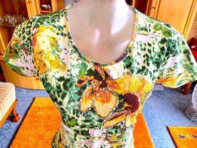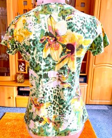Damen Shirt mit Pailletten & Blumenprint Gr.S in Grün/Bunt Jersey