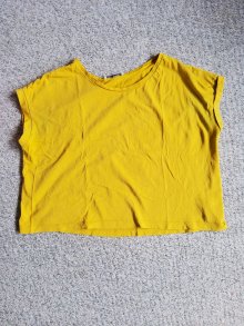gelbes Kurzarm Shirt mit Rückenausschnitt für Damen in Gr. M der Marke Fishbone (New Yorker)