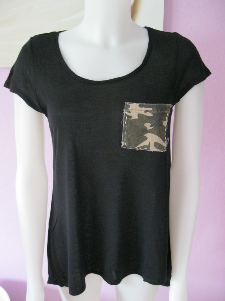 T-Shirt # H&M # Divided # Brusttasche # Camouflage # schwarz # S