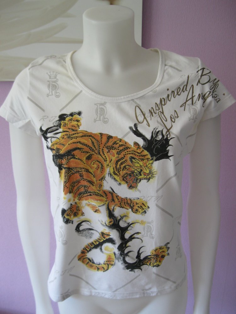 T-Shirt # Rusty Girls # Tiger-Print # weiß # S