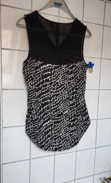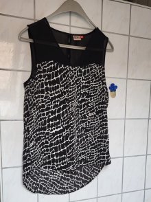 Damen Shirt Jersey mit Print & Pailletten Gr.S in Schwarz/Creme NW