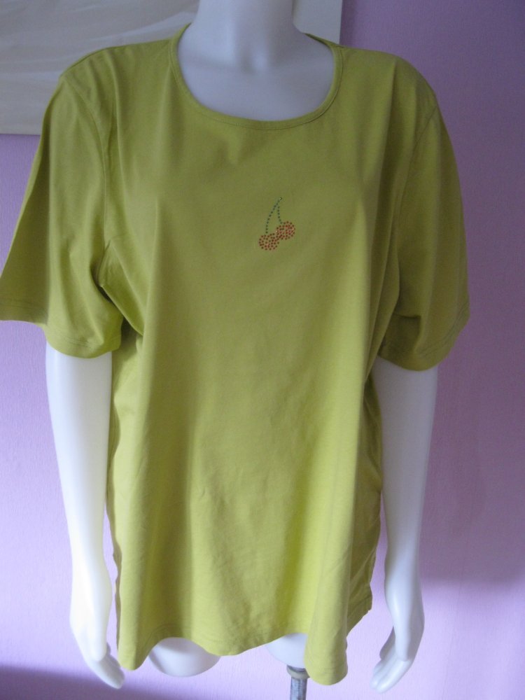 T-Shirt # Apfelgrün # 100% Baumwolle # Strass # Kirsche # 48