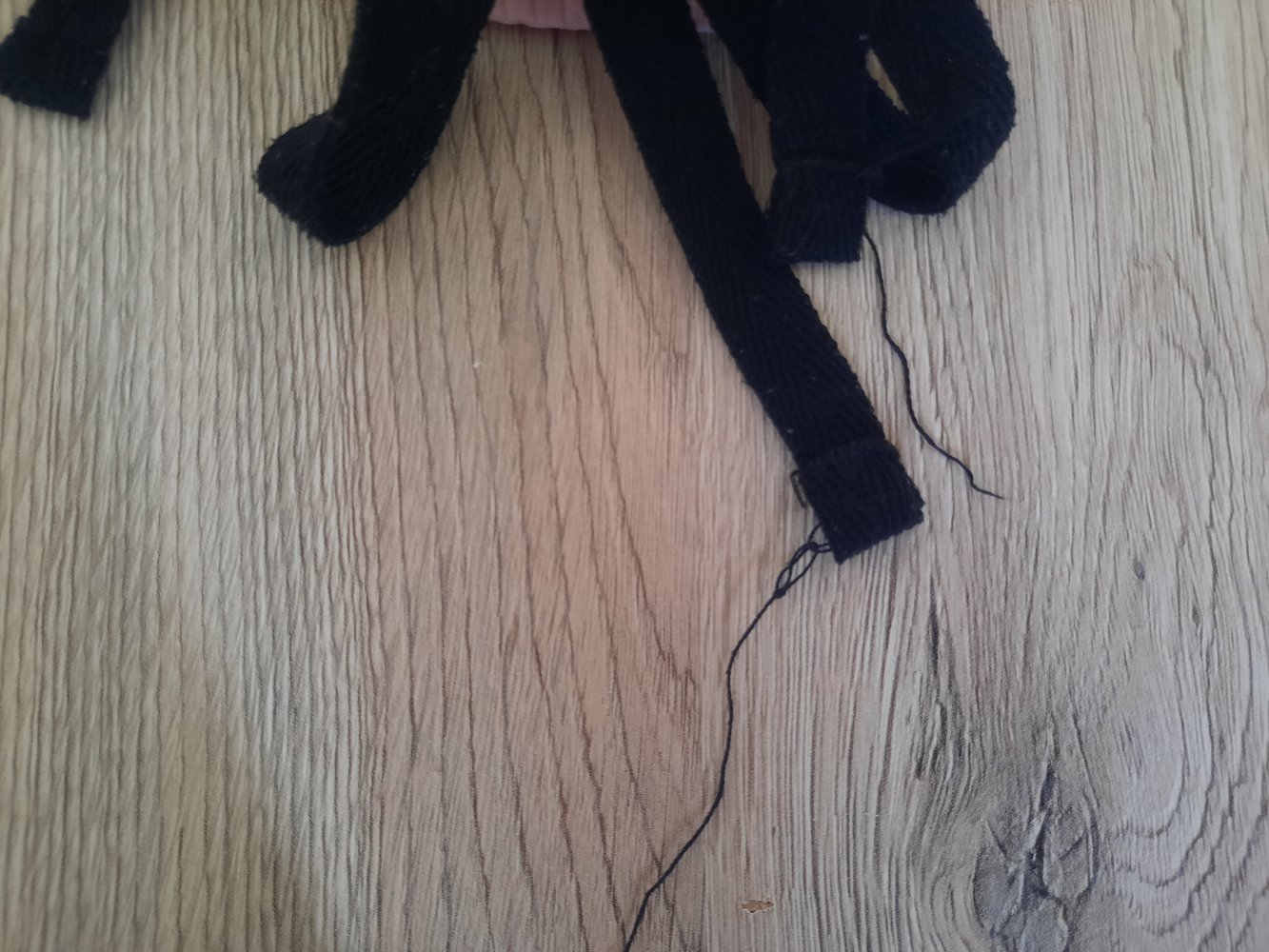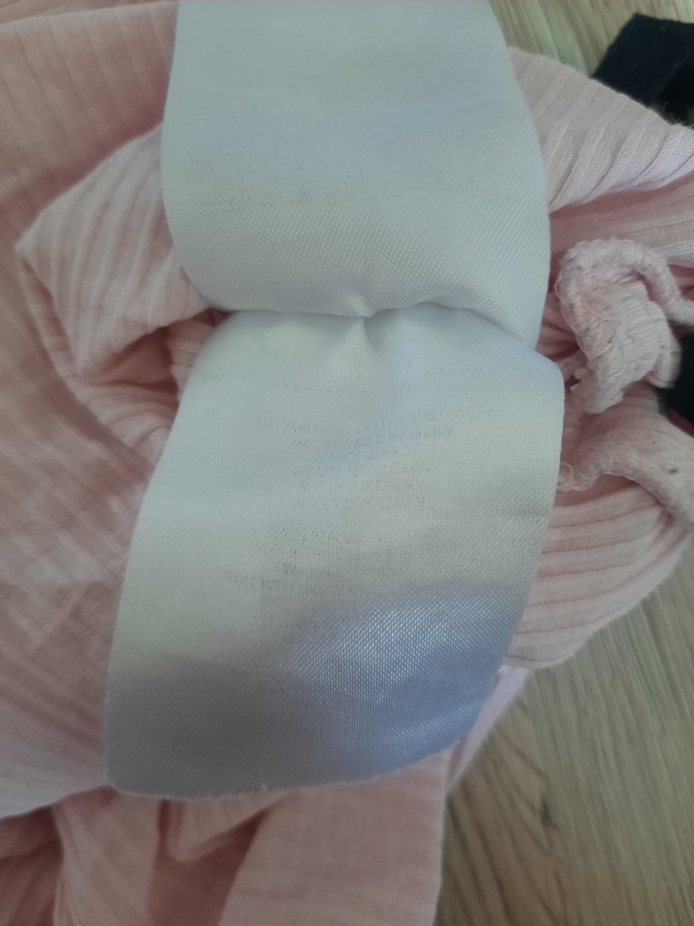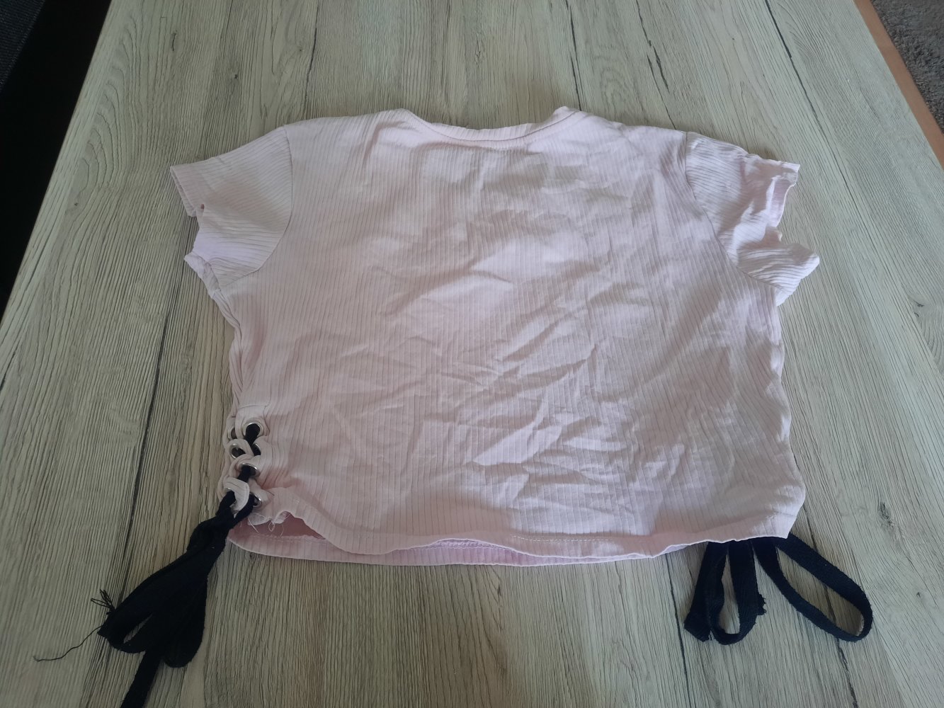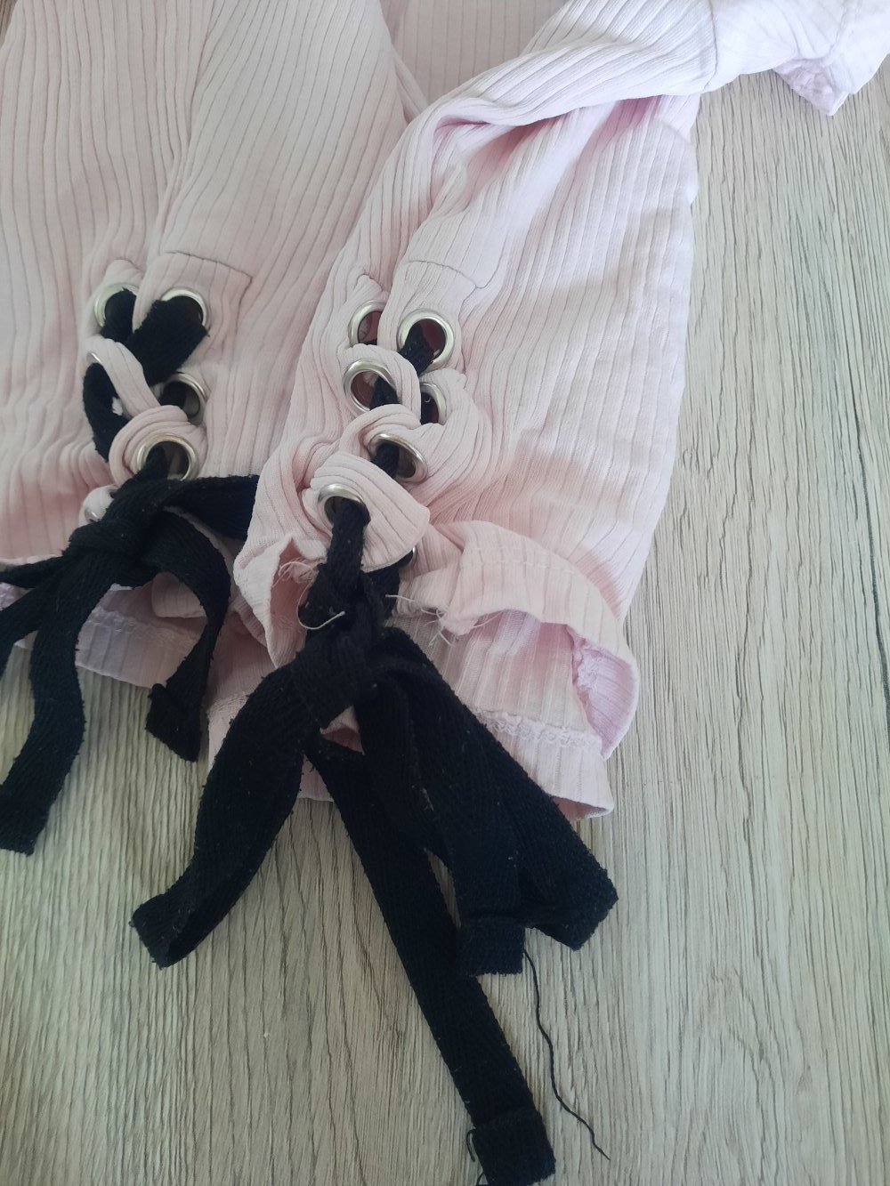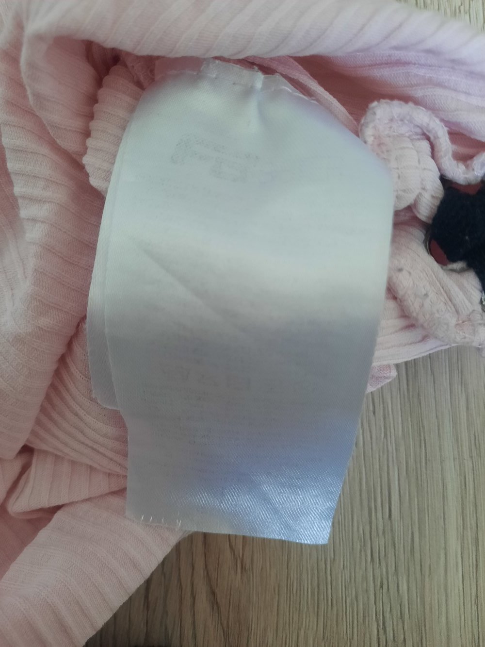 Oft getragen. Pflegehinweisschild ausgewaschen und nicht mehr lesbar, siehe Bild. Schleifenband zieht Fäden, siehe Bild.