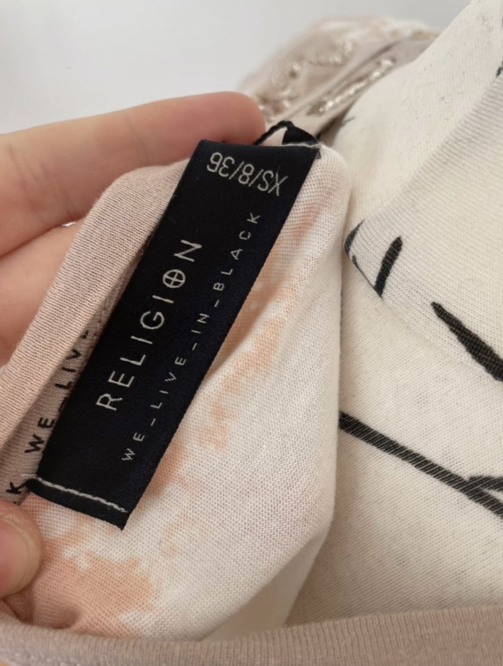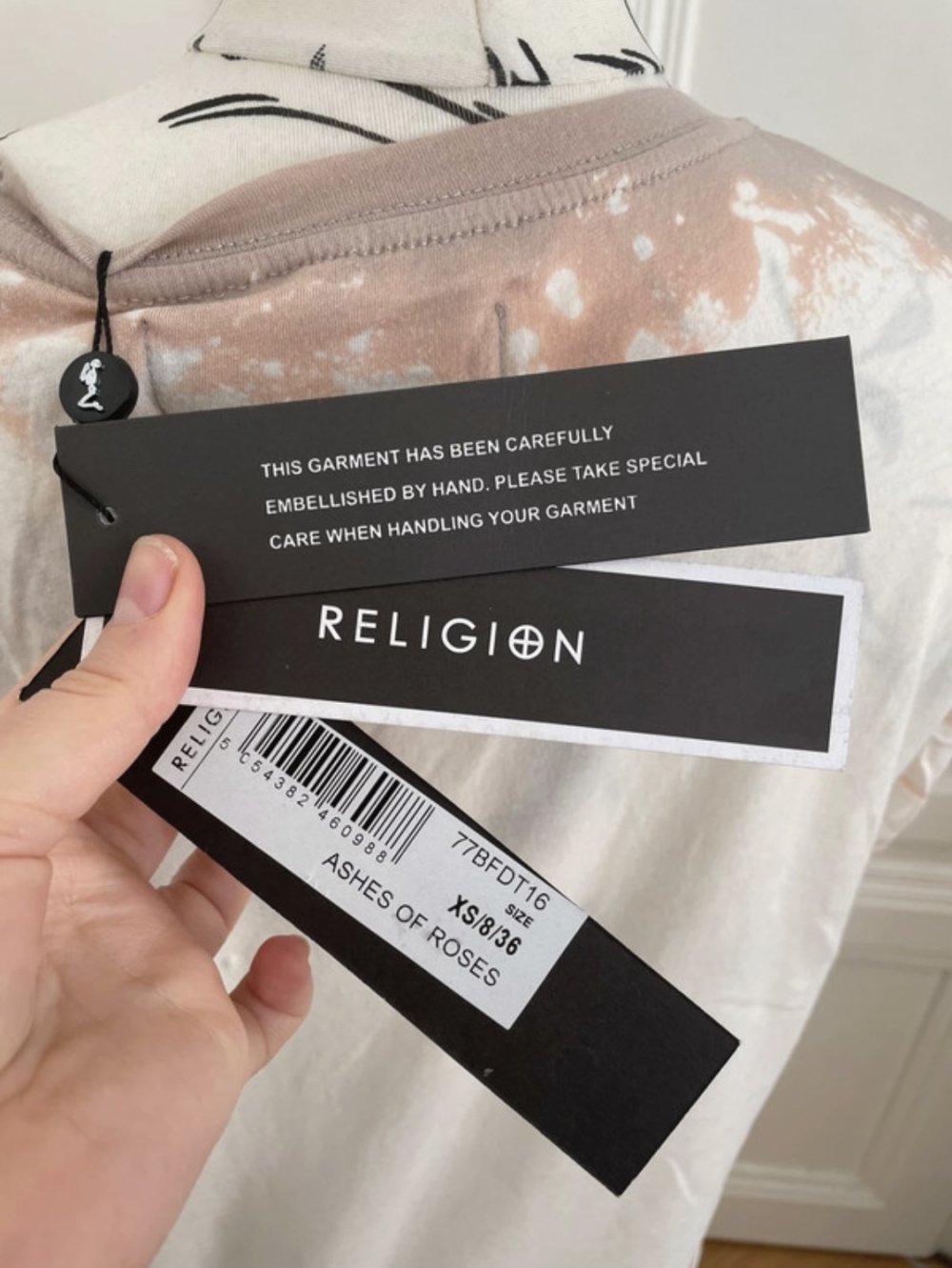 Die Größe ist XS, wobei Religion sehr großzügig geschnitten ist. Es wäre für XS oversized, also auch passend für S und M, siehe Maße