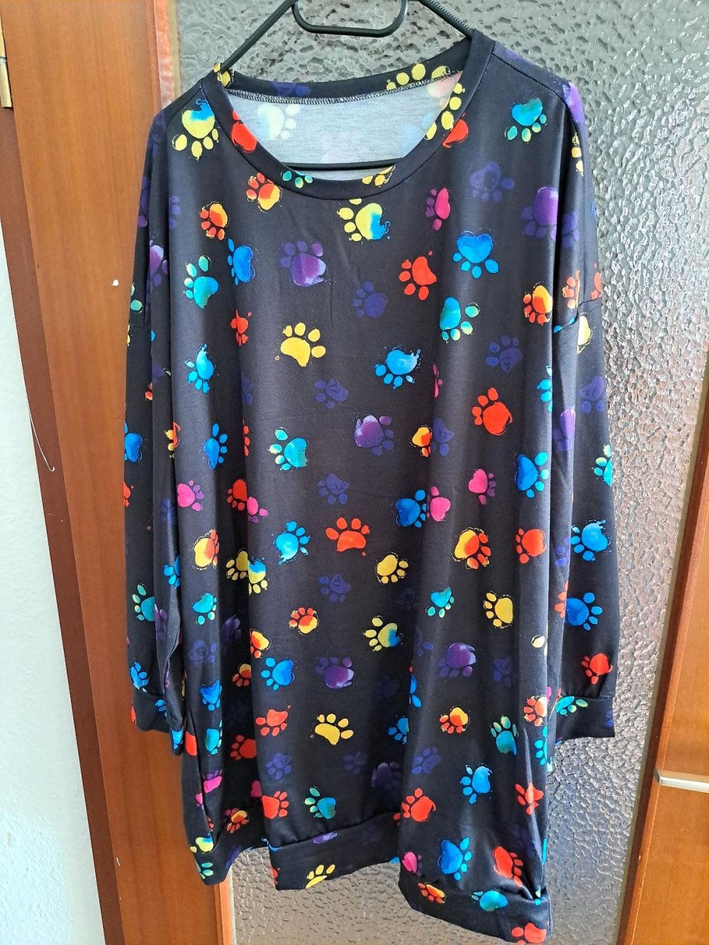 neues damen oberteil bunt mit tier pfoten gr.xxl