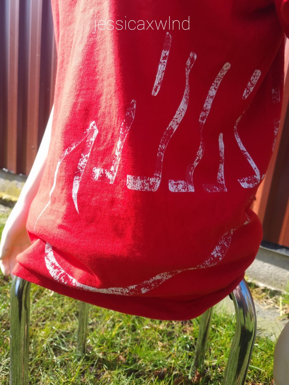 Ich möchte gerne mein rotes T-Shirt von der Marke Nike weitergeben. Der Print ist abgeblättert, kann auch meiner Meinung nach gewollt so aussehen. :) Sonst ist das T-Shirt in einen guten Zustand. Die Größe ist geschätzt, Etikett ist abgeschnitten.