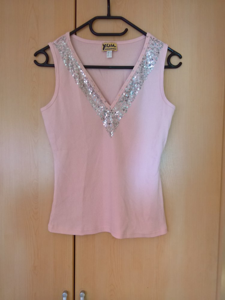 rosa Top mit verziertem Ausschnitt Gr. 38