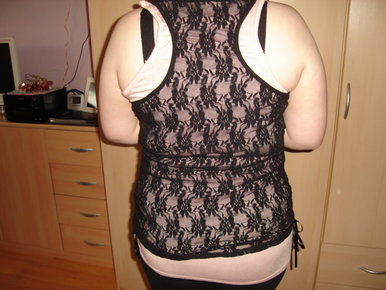 New Yorker Fishbone Doppeltop Top schwarz rosa Größe XL