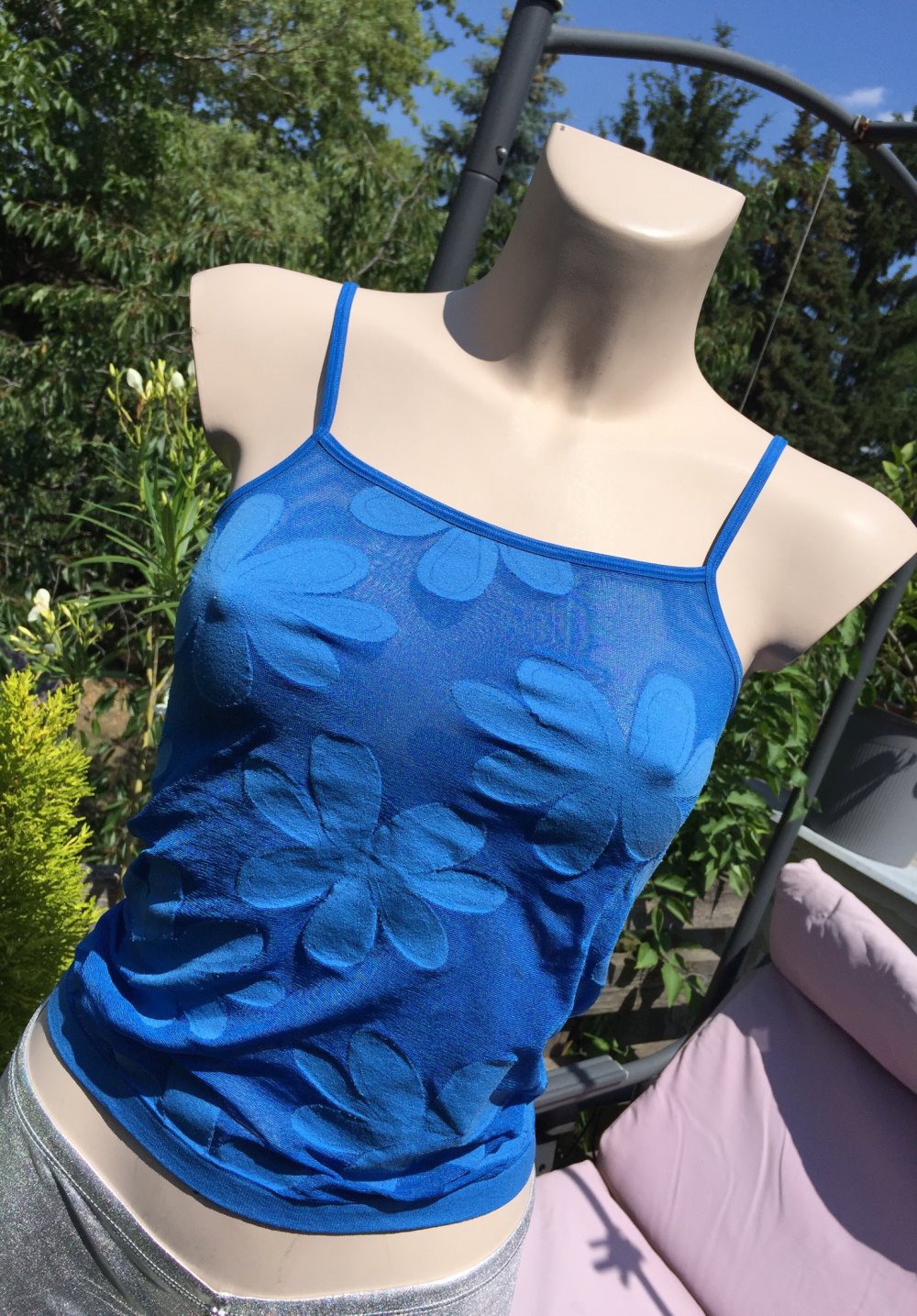 Blitzblaues Spaghetti Top aus der „Frisco“ Serie von Wolford in Größe S.