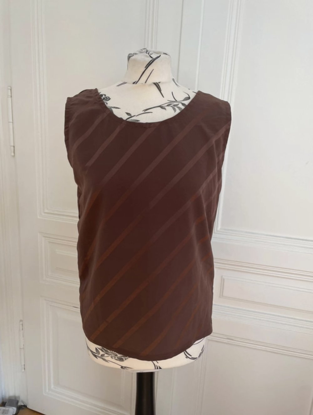 Selbstgenähtes Shirt mit überkreuzten Trägern in Braun, Gr. 36/38
