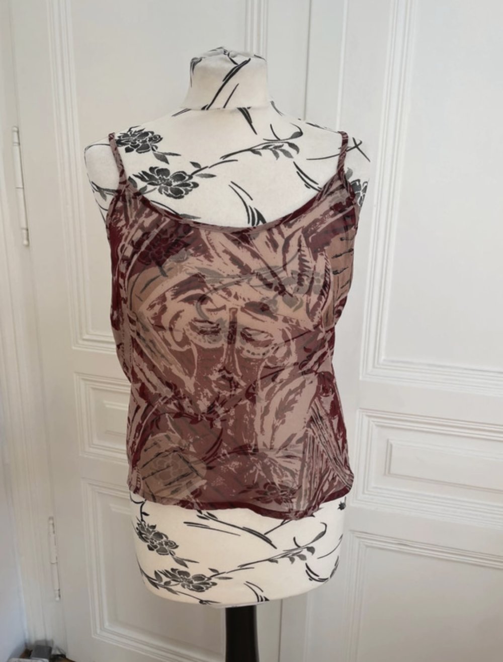 Schönes transparentes Top von Mondi. Es ist etwas kürzer geschnitten und hat verschiedene Muster in Richtung Ethno-Look. Es ist sehr leicht und luftig. Von der Größe her würde ich sagen, es fällt etwas kleiner aus, eher S als M. Bitte Maße beachten.