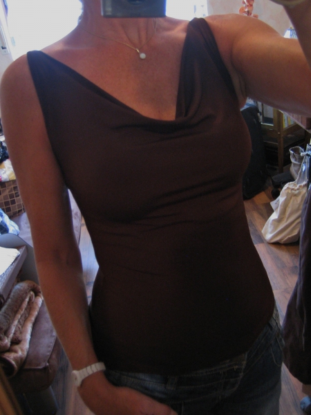 Schokobraunes Top mit Wasserfallausschnitt von Xanaka.