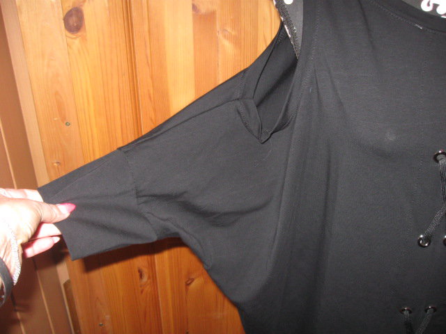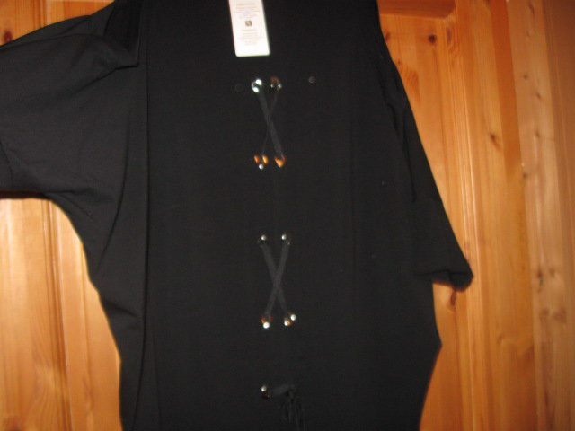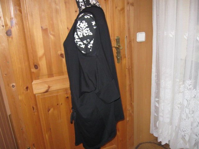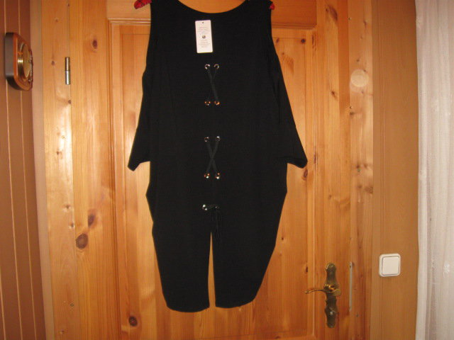 Biete ein absolut Wahnsinns Teilchen, aus Italien. Dieses Mitbringsel passt mir leider nicht. Alle unliebsamen Pölsterchen werden einfach weg kaschiert. Im Rückenbereich ist es kürzer geschnitten, als der Brustbereich, der durch die Zipfel länger ist. Des weiteren sind die Ärmel raffiniert geschnitten. Eine Größenangabe finde ich leider nicht, es kann oversize getragen werden, also von Gr. M-XL. Ein echtes Sahneteilchen, das nicht jede besitzt!!!