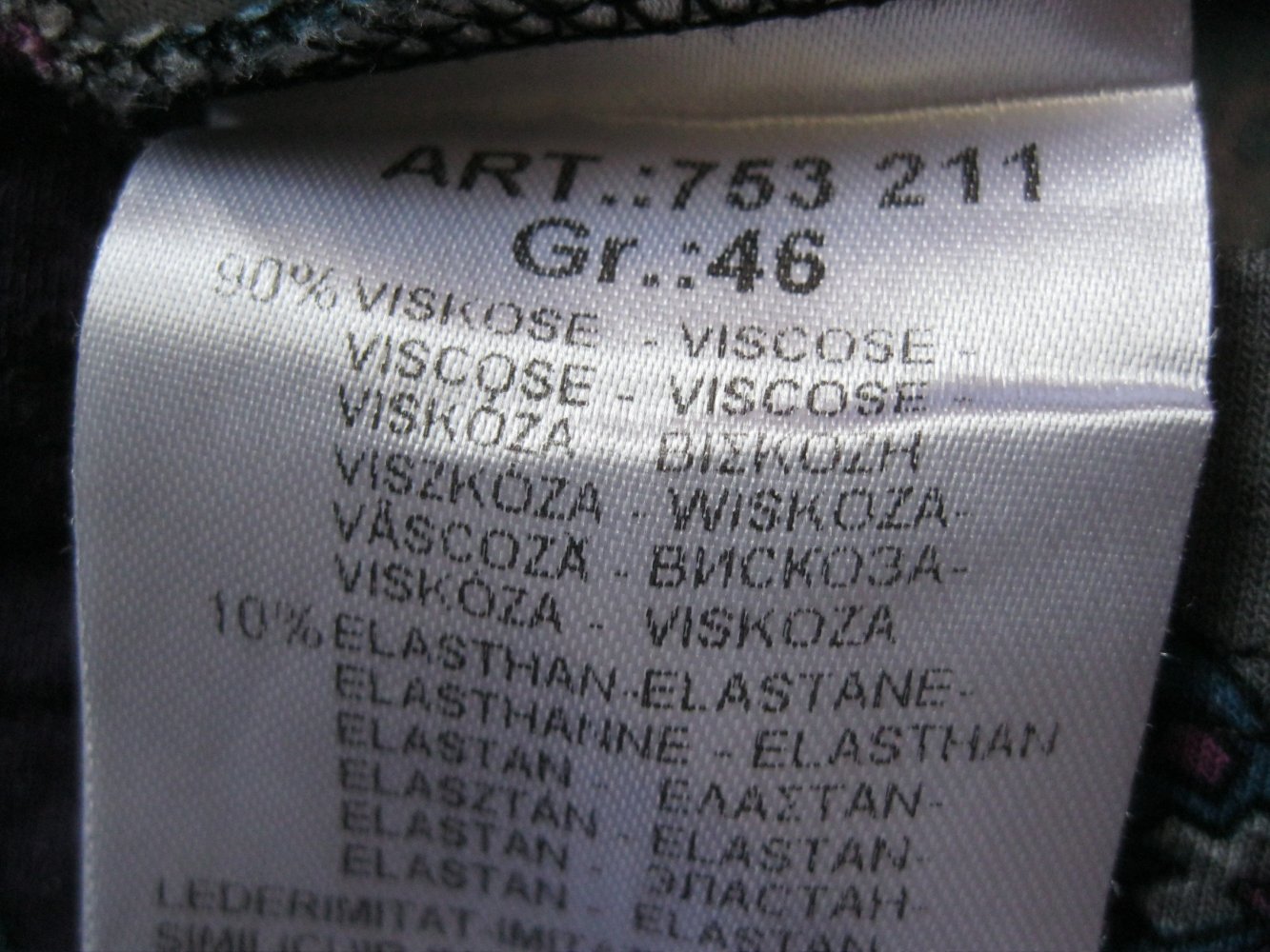 Hauptmaterial: 90% Viskose, 10% Elasthan