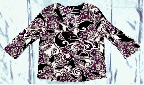 Langarm-Tunika-Bluse von Lidea - Gr.42 - schwarz / lila / weiß durchscheinendes Muster